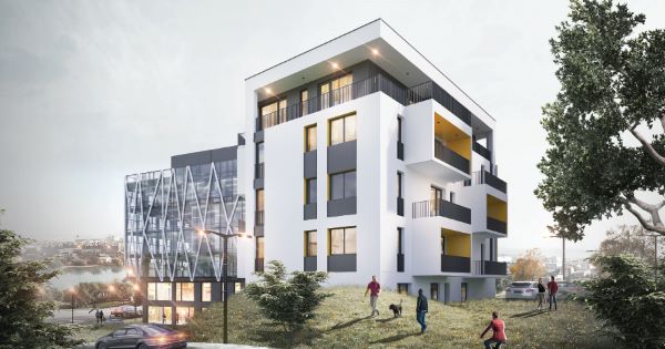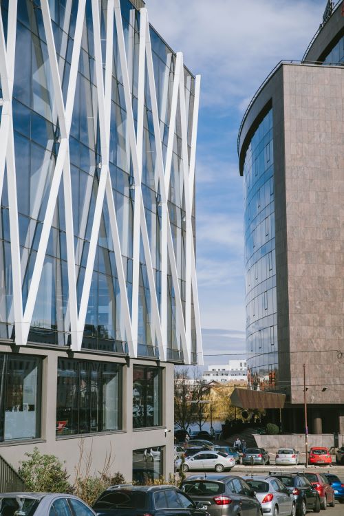 Cube Offices, die sich durch hochwertiges Design, die Verwendung hochwertiger Baumaterialien und modernste technische Installationen auszeichnen, sind ein gemischtes Gebäude, das Büroräumen und Wohnraum gewidmet ist.